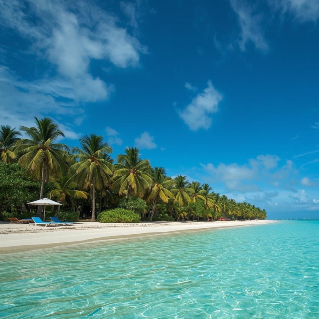 Praia paradisíaca em Maceió com mar cristalino e coqueiros, destacando oportunidades de última hora para viagens.